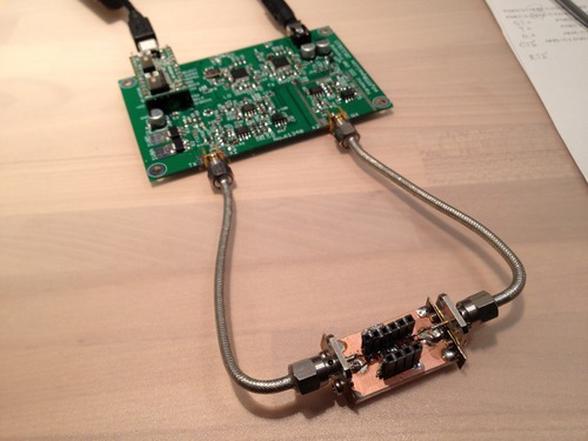 先日ダイレクトサンプリングのスプリアスを見てみましたが、これに使うフィルタをシミュレータで検討、チップ部品で試作し、その通過特性(S21)を自作のVNAで見てみました。